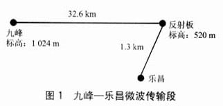 九峰—樂昌微波傳輸段,中間插入了反射板,如圖1所示。