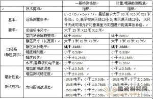 天線輻射參數(shù)要求在自由空間中進行測試,現(xiàn)實中,只能盡可能的模擬自由空間,稱為準(zhǔn)自由空間。高質(zhì)量的現(xiàn)代微波暗室是目前最好的準(zhǔn)自由空間。通常有室內(nèi)遠場測試、室內(nèi)緊縮場測試及室內(nèi)近場測試三類測試方法。理論上,這三類方法都是正確的,都有可能實現(xiàn)準(zhǔn)確的測試,但實際上由于各自硬件條件的限制、經(jīng)費預(yù)算的限制、以及對測試效率的期望,導(dǎo)致每一種測試方法所對應(yīng)的實際系統(tǒng)會引入各自固有的測試誤差,從而限制了輻射參數(shù)測試的準(zhǔn)確性。對此,需要對場地進行量化的要求,如靜區(qū)反射電平、尺寸的要求等等,保證測試精度。舉例如下(以直接遠場和緊縮場輻射參數(shù)測試場地為例):