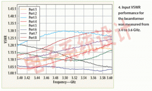 為最小化RF信號損耗并保持諸如相位和幅值等信號屬性,一般要將波束成型網絡緊挨著天線組件放置或將其整合進天線組件。在本例中,波束成型器被挨著天線放置并采用相位匹配電纜匹配跨接矩陣的相位(見圖2)。這些相位匹配電纜在期望的頻帶范圍提供±1deg.的相位匹配精度。每36英寸電纜長度貢獻的插入損耗小于0.5 dB。